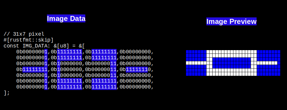 This is exactly why we need to tell the embedded graphics crate the exact width of our image. When we specify the width, the system knows how many bytes to use for each row. Once it knows the width and the image format, it can figure out the height automatically.